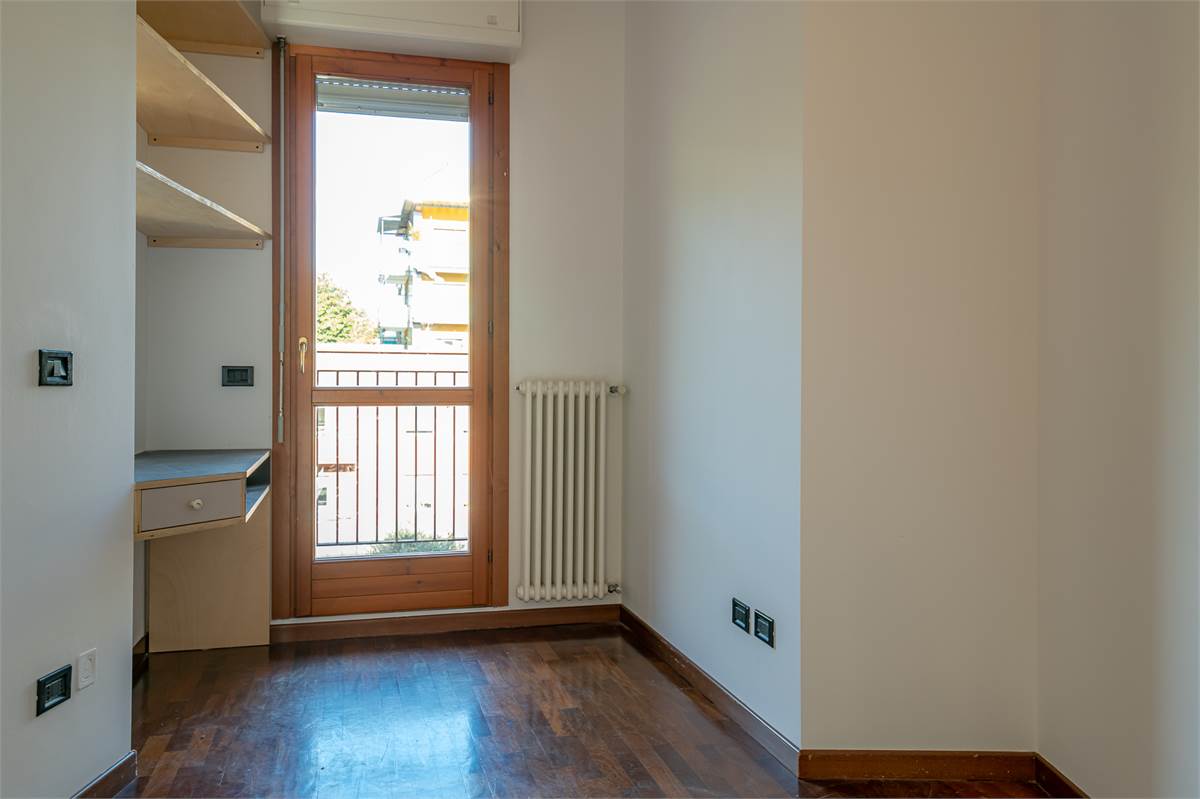L'appartamento dispone di due lunghi balconi su entrambi i lati liberi, tutti i locali sono quindi dotati di portafinestra.