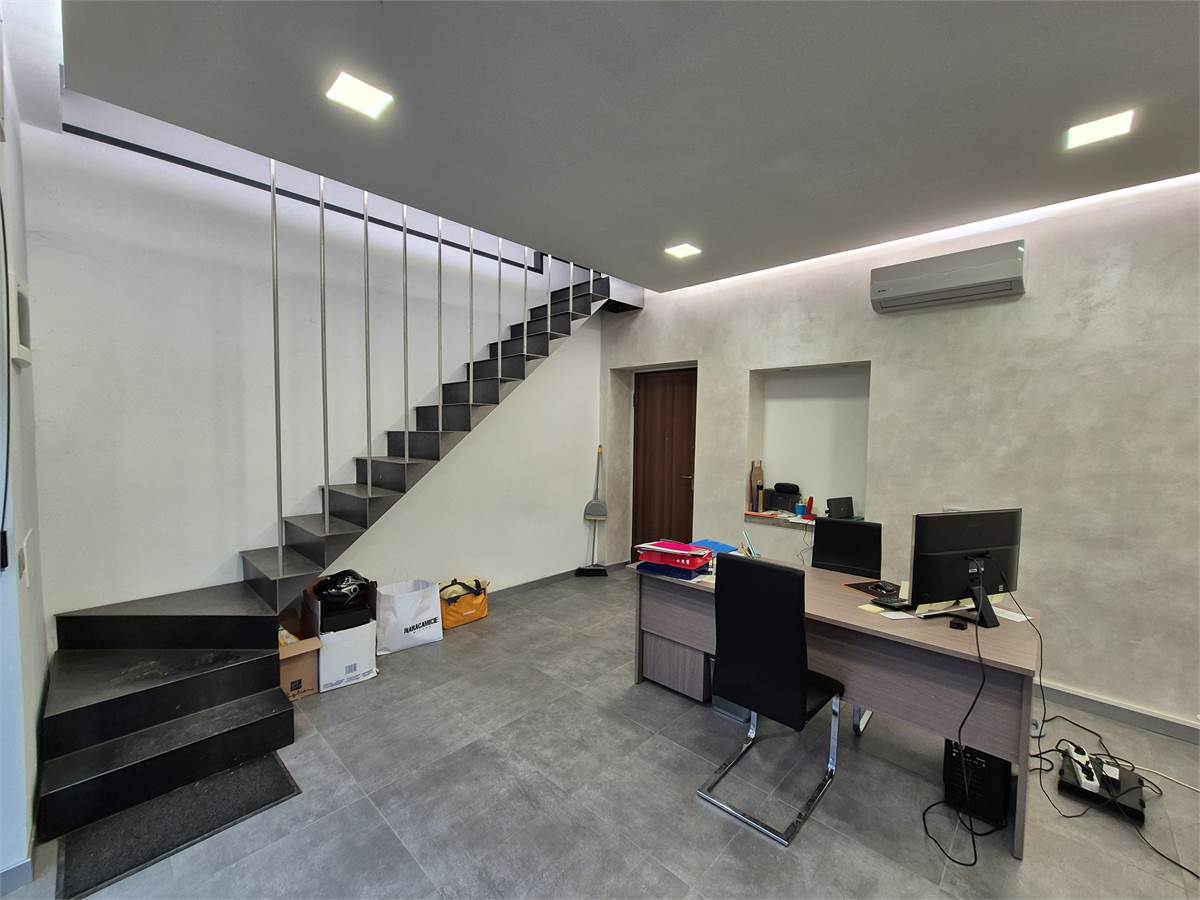 Proponiamo in locazione un ufficio su due livelli, completamente ristrutturato nel 2020, ideale per professionisti e piccole aziende. L'immobile, di circa 50 mq più il bagno, è composto da un ingresso con portoncino blindato, due locali (uno al piano terra e l'altro al piano primo), un posto auto privato e un bagno all'esterno.