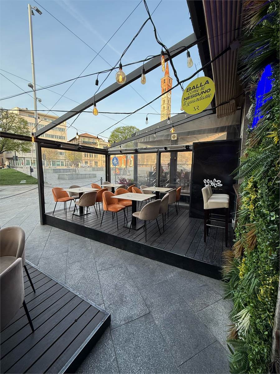 Il bar viene venduto compreso di tutto l'arredamento, e offre molti punti di forza, come l'ingresso indipendente, l'impianto di antifurto, il passaggio automobilistico e pedonale, la predisposizione per l'aria condizionata e per la veranda con tetto apribile elettrico termo riscaldato, e le telecamere.