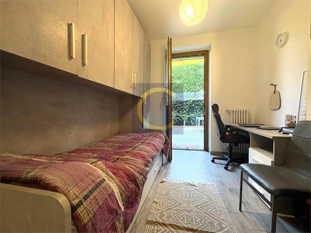 Comodissimo grazie alla vicinanza a tutti i servizi di cui hai bisogno, proponiamo IN ESCLUSIVA recente appartamento posto al piano terreno di una palazzina. In ottime condizioni di manutenzione, dall'ingresso si accede ad una soleggiata zona living con cucina a vista, collegata alla prima porzione di giardino disposta a sud. Dal grande disimpegno, dove è possibile posizionare un pratico armadio a muro, da un lato trova spazio il bagno con doccia mentre, dall'altro la cameretta e la camera matrimoniale entrambe dotate di portafinestra che consente l'utilizzo della seconda porzione di giardino disposta ad est. I locali sono climatizzati. Pratici e indispensabili il box e la cantina al piano interrato. L'identificazione energetica in classe "B" consente la possibilità di ottenere mutui a tassi agevolati.