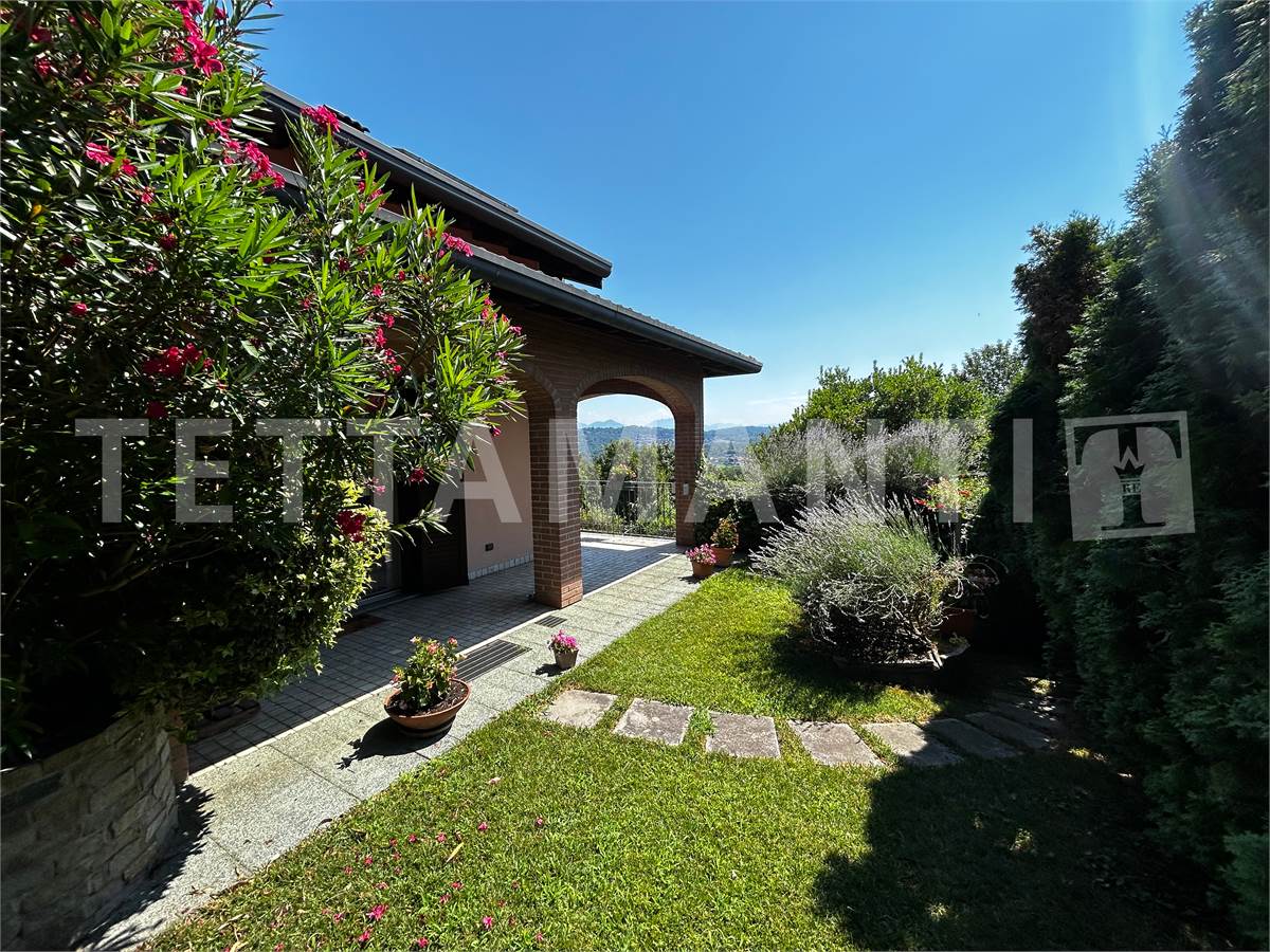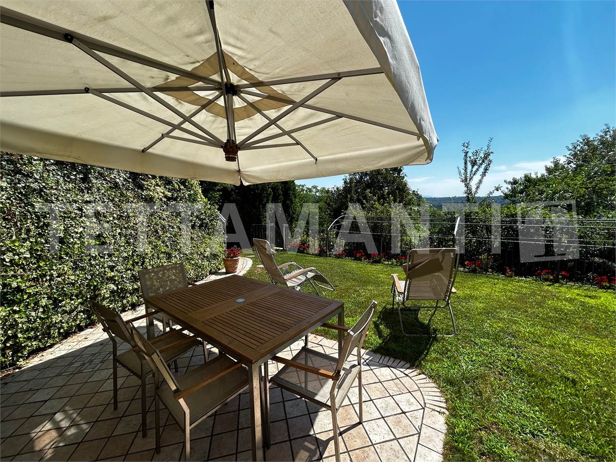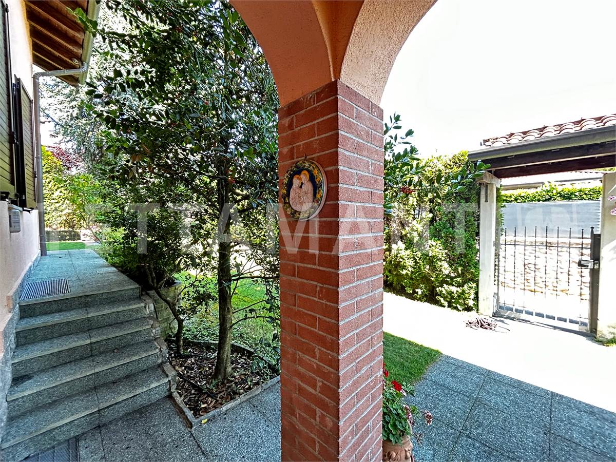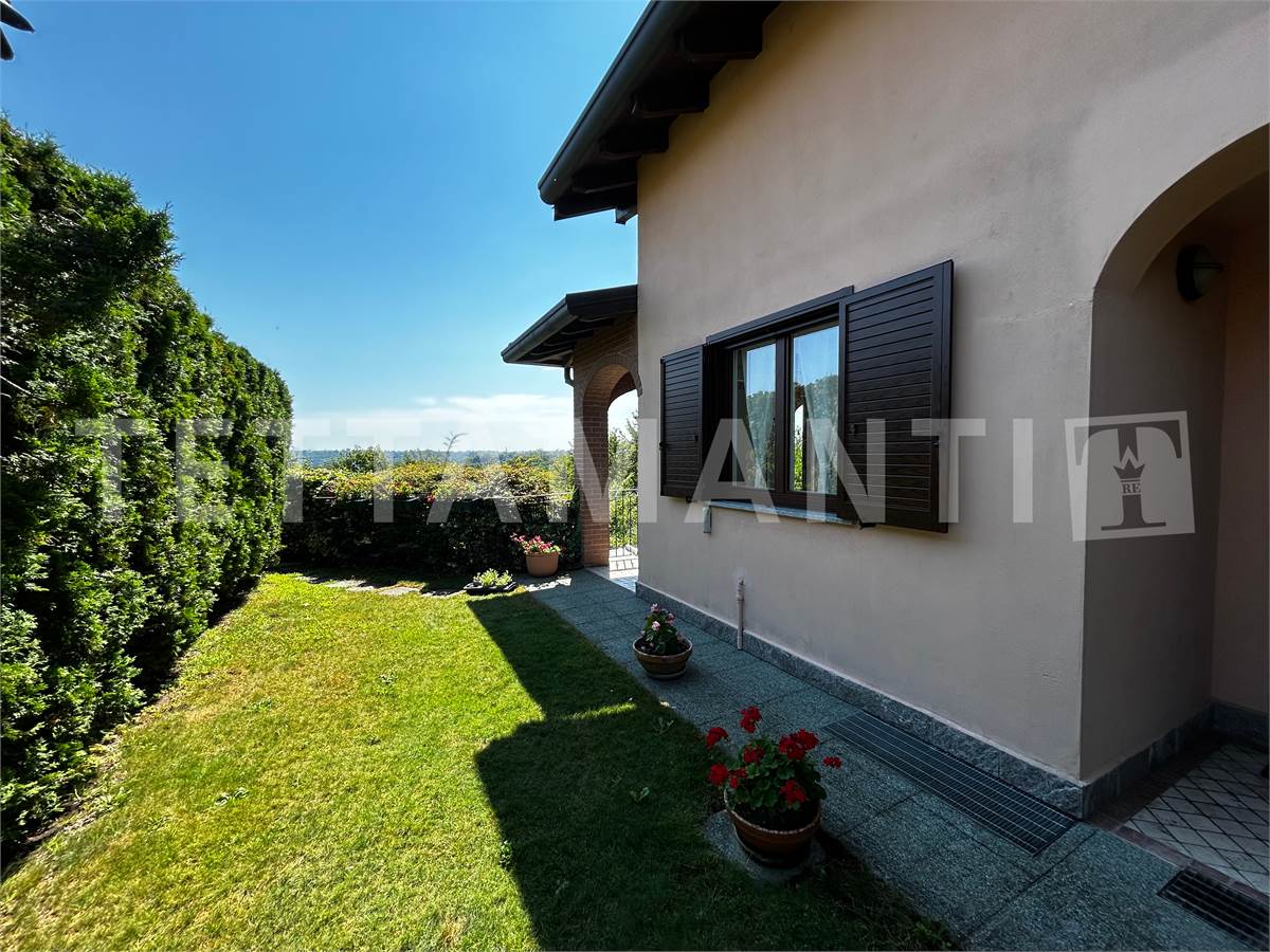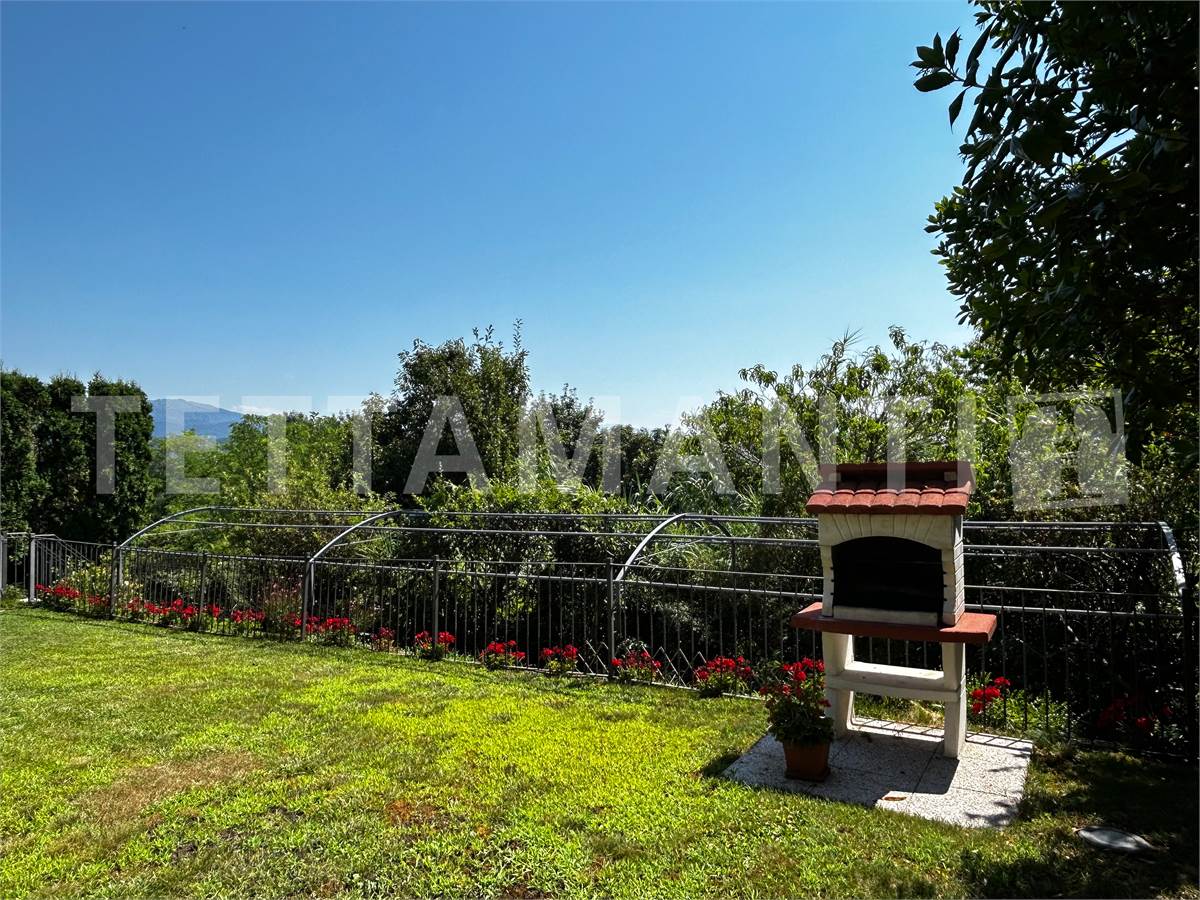 Il grande giardino, attrezzato con zona barbecue e dotato di un impianto di irrigazione indipendente per vasi e prato, è collegato alla casa da un'ampia area porticata, e si presta alla realizzazione di una piscina o alla posa di una vasca idromassaggio (per altro già presente nel bagno padronale).