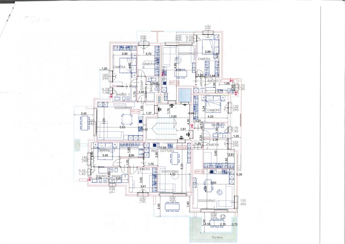 TIPOLOGIA TRILOCALE PIANO PRIMO 04: ingresso, soggiorno con cucina a vista e uscita sul terrazzo, disimpegno notte, camera matrimoniale, seconda camera con balcone, 2 bagni. Autorimessa. Prezzo: €. 282.000,00 + iva.