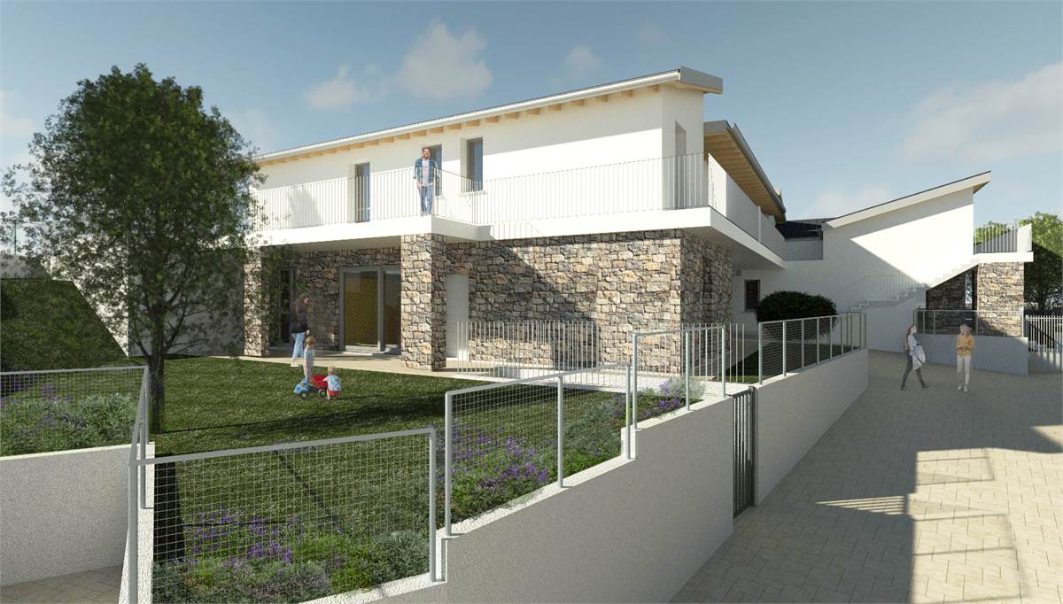 In zona residenziale ma allo stesso tempo comoda, adiacente al centro e a poca distanza dalle scuole elementari, circondata dal verde, in minipalazzina di 6 appartamenti tutti dotati di giardini privati o terrazzo.