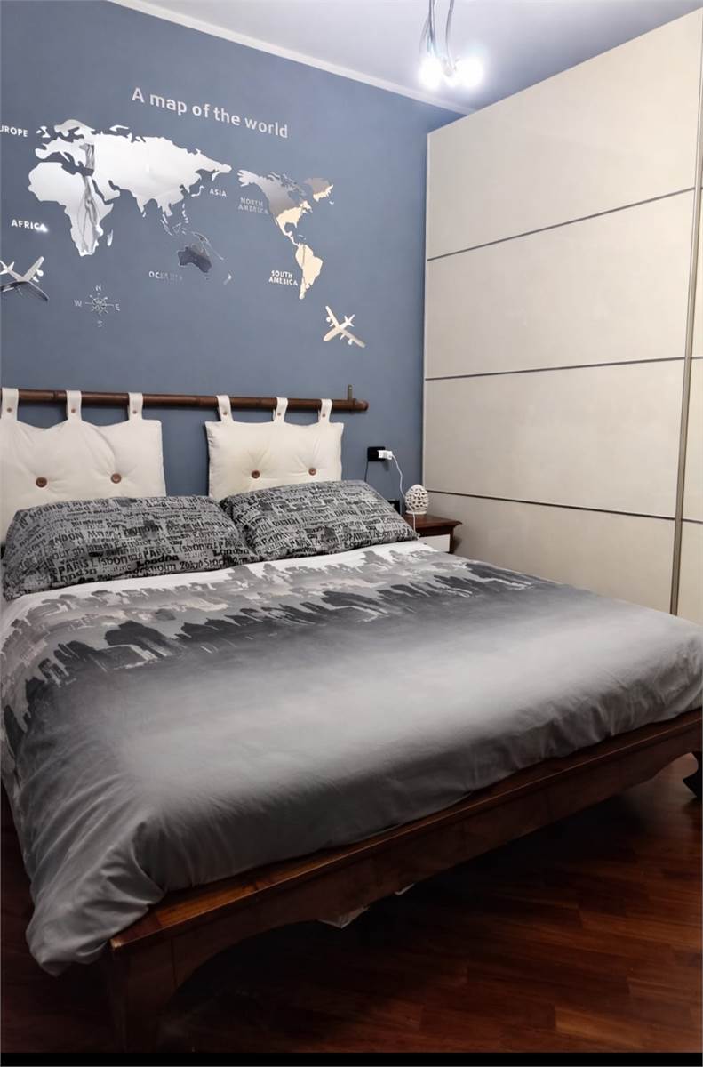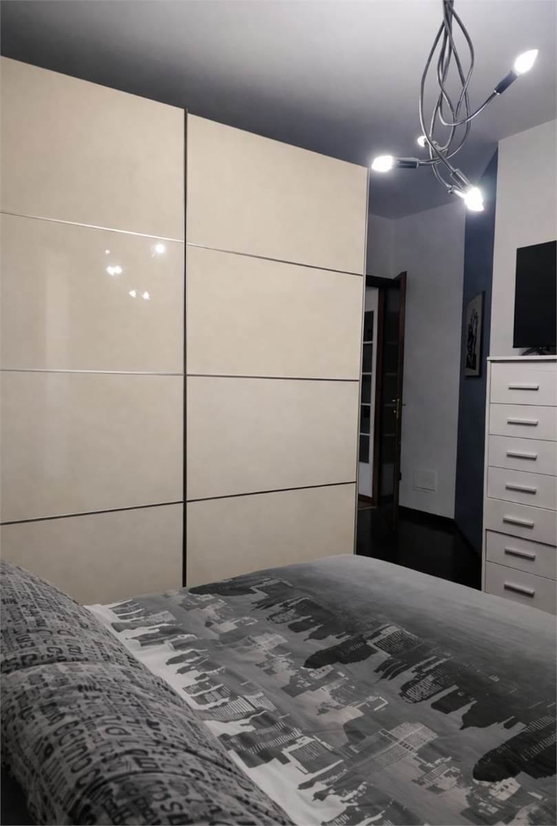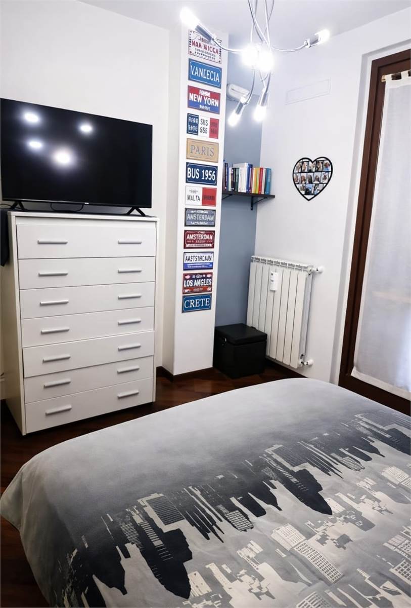 L’abitazione si apre su un luminoso soggiorno con cucina a vista, ben organizzato e accogliente. Un pratico disimpegno conduce alla zona notte, composta da due ampie camere matrimoniali e doppi servizi.
