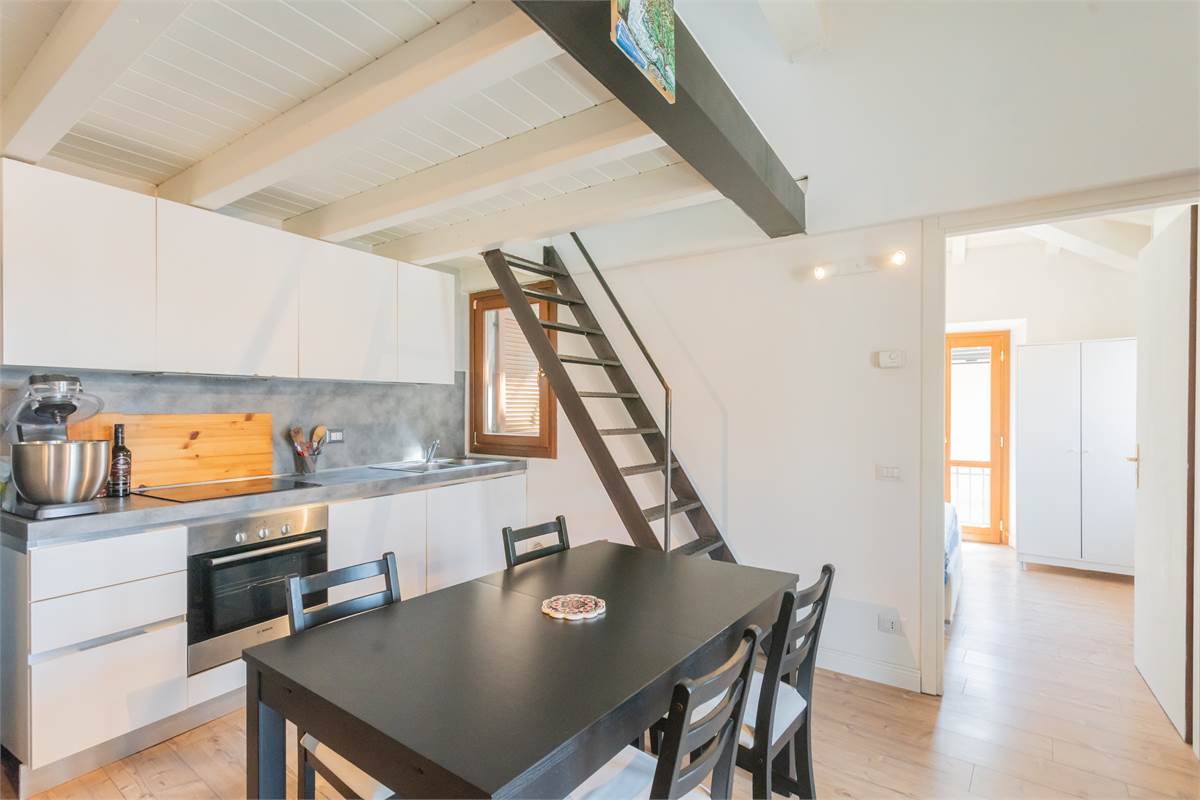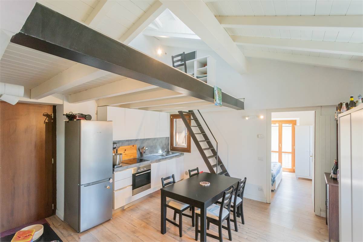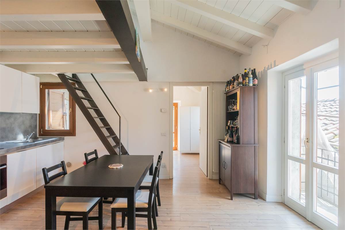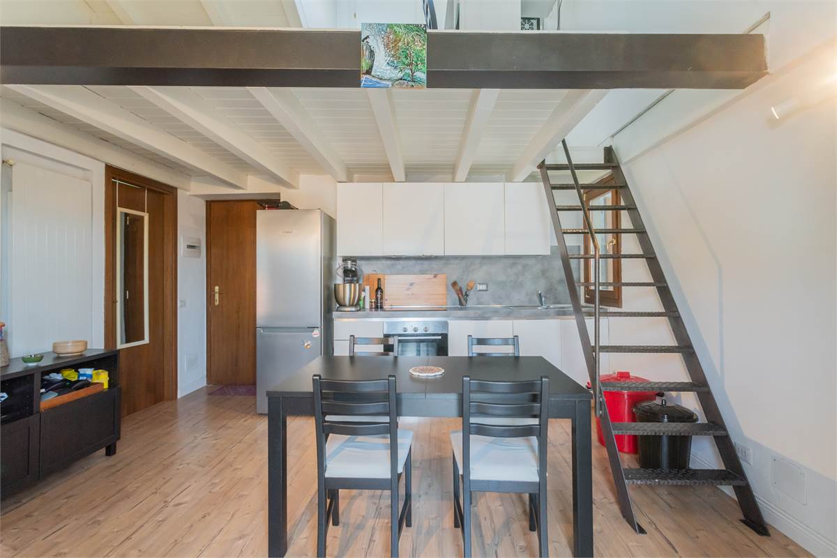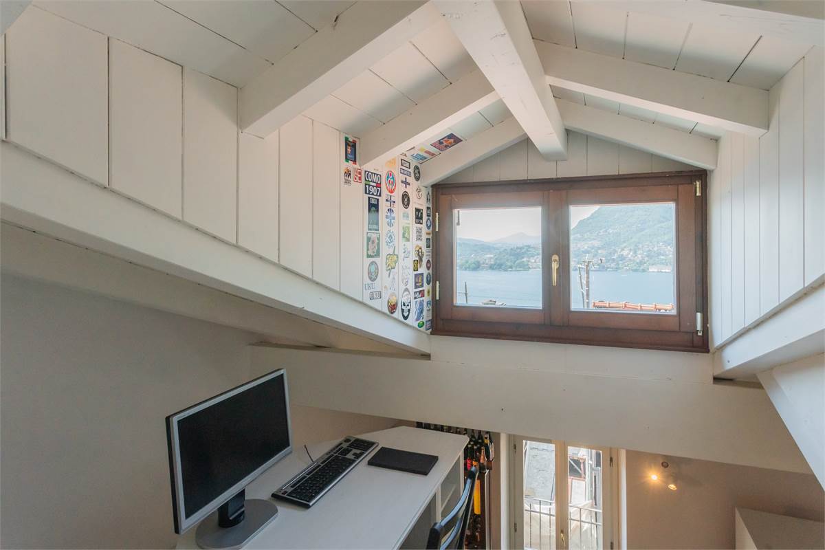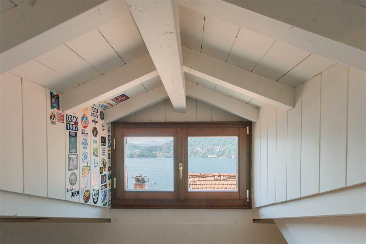 Blevio Como Lago di Como Como Lake : Frazione Sopravilla a soli tre km dalla città di Como appartamento indipendente nel centro del paese immerso nella tranquillità che caratterizza il bacino del lago di Como.Al primo ed ultimo piano con Ingresso indipendente in casa di soli due appartamenti zona giorno con cucina e zona pranzo, camera da letto matrimoniale, servizio con box doccia.Due balconi Accessoriato di locale soppalcato con tetto rifinito a travi a vista di colore bianco