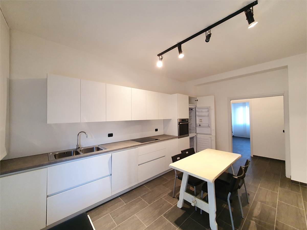 L’immobile si apre su un ingresso con portoncino blindato e conduce a un ampio e luminosissimo soggiorno, caratterizzato da spazi generosi e grande versatilità (arredo da completare secondo le proprie esigenze). La cucina è abitabile e dotata di accesso diretto al balcone.