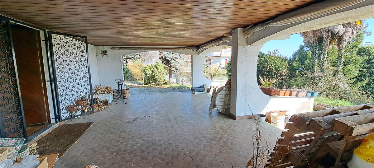 Piano terra formato da locali accessori quali bagno, ripostiglio/lavanderia, locale caldaia, autorimessa per due auto, ampio porticato coperto di mq. 40 Con scala interna che conduce al piano primo di mq.130 si trovano ampio soggiorno con balcone panoramico, cucina abitabile, 2 camere da letto con balconi, bagno;