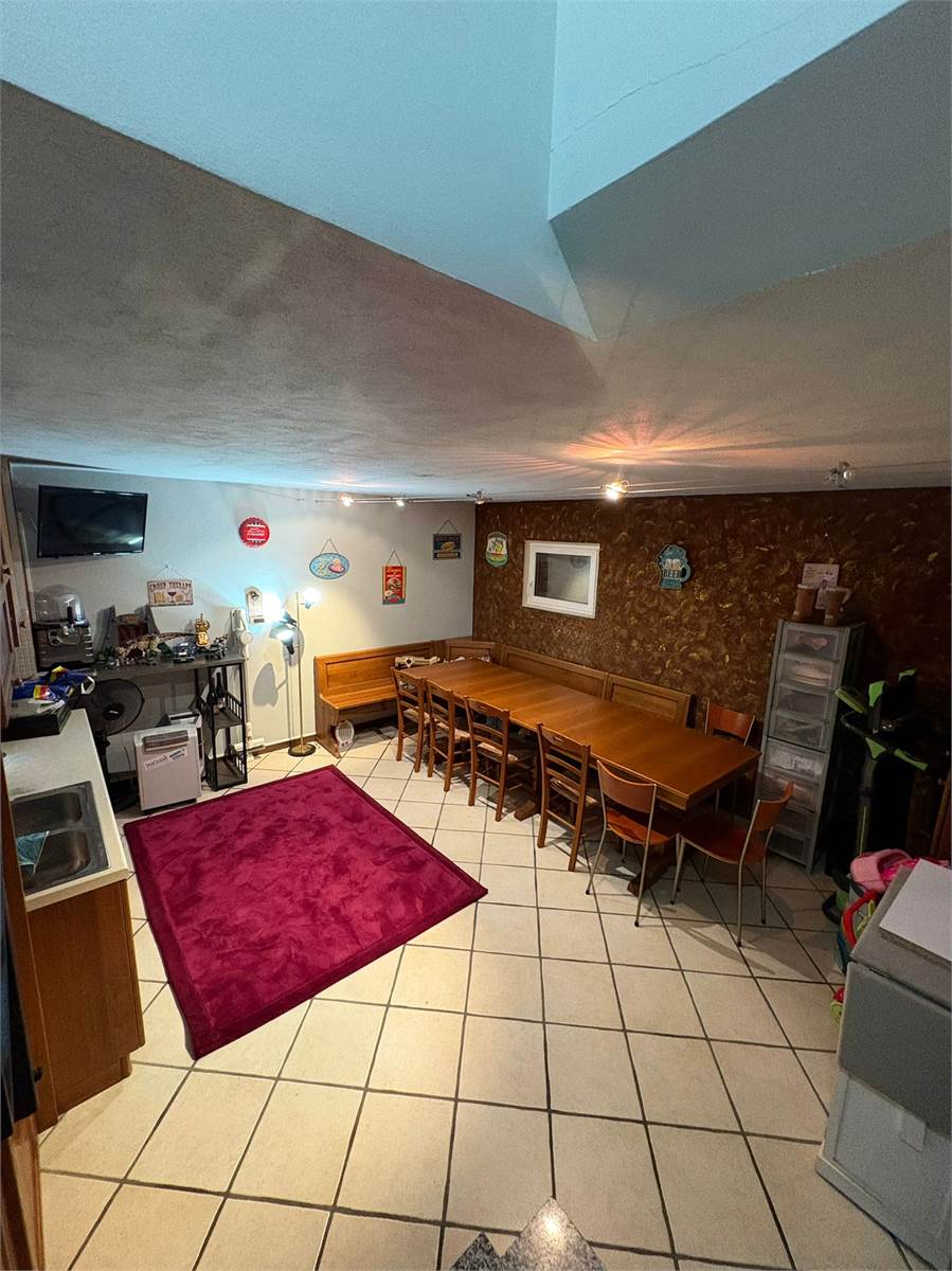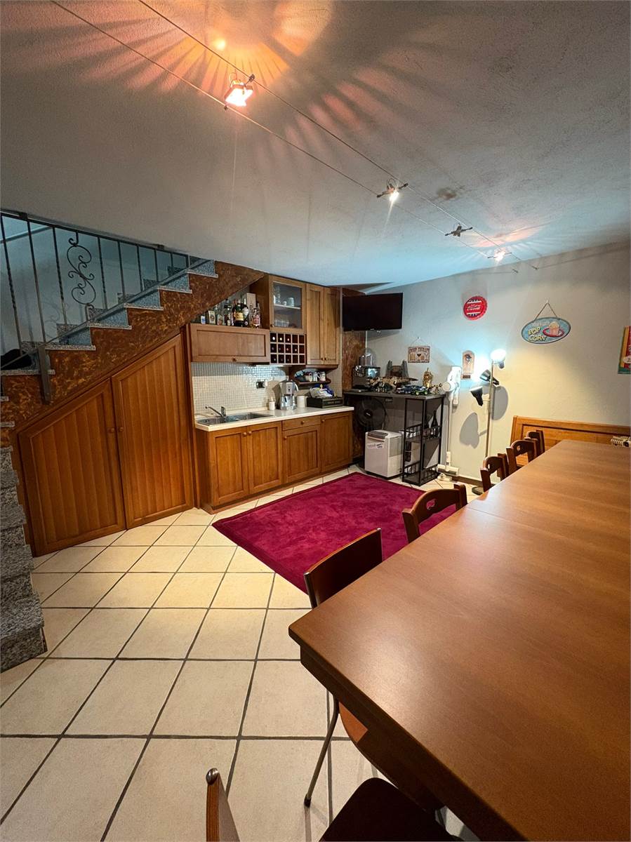 Una scala in muratura conduce al piano inferiore dove troviamo una taverna, ambiente versatile e accogliente ideale come sala hobby, zona relax o studio. Completa questo livello un pratico angolo lavanderia.