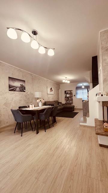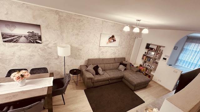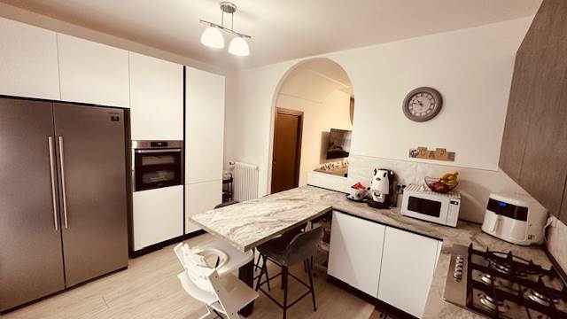 L'abitazione è composta da un ottimo tre locali, doppi servizi, con un camino nella zona giorno che rende accogliente e caloroso invitare amici e parenti.