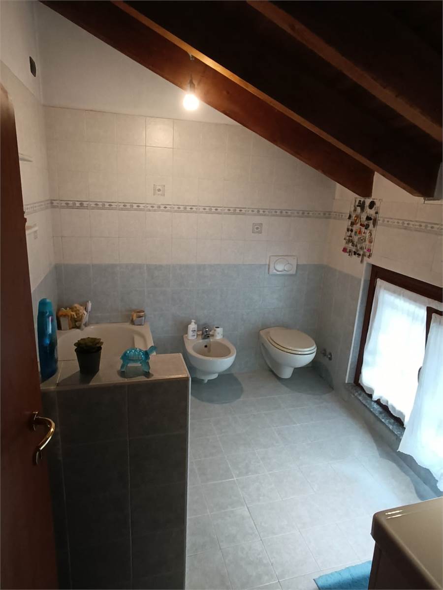 Piano terra con ampio box e locale studio/locale termico, giardino lato sud, bagno cieco, portico dove poter parcheggiare comodamente due autovetture. piano primo appartamento di tre locali con due servizi e balcone, piano secondo agibile non abitabile con due stanze a uso hobby con bagno/ripostiglio , e terrazzo. Soluzione libera entro 3 mesi dal compromesso.