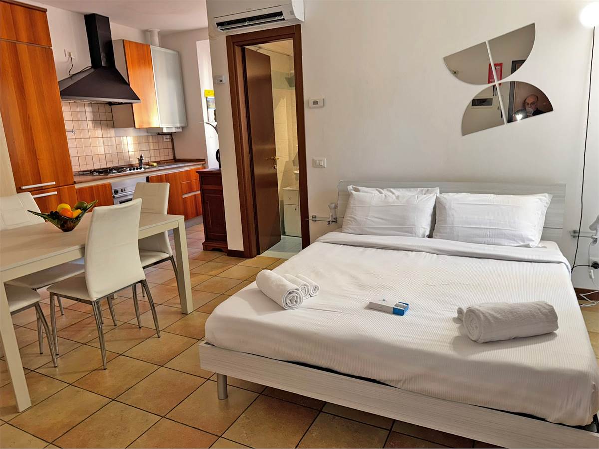 In ottime condizioni, è composto da un ampio locale giorno/notte con zona pranzo, zona letto e angolo cottura, antibagno e bagno, inoltre ha un balconcino con ringhiera in ferro battuto che affaccia sul cortile interno