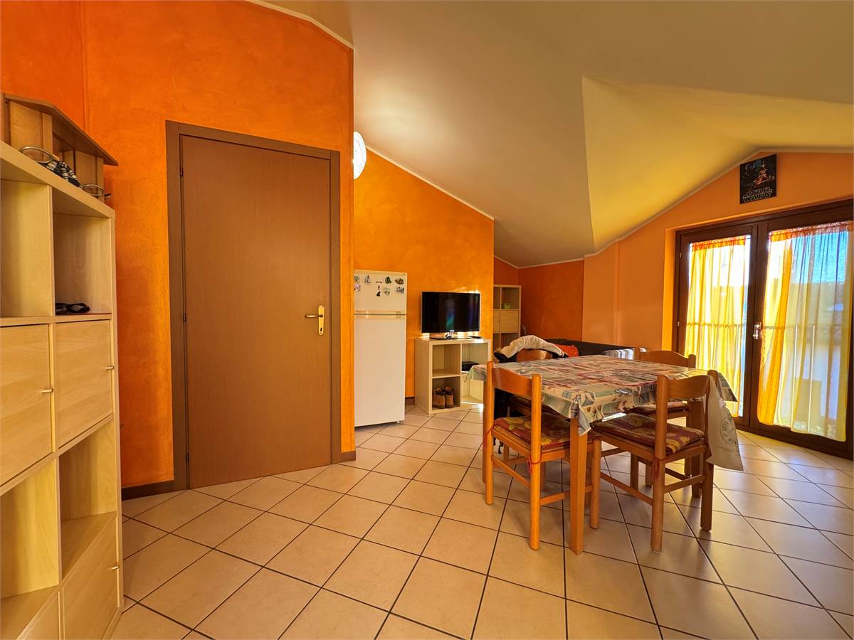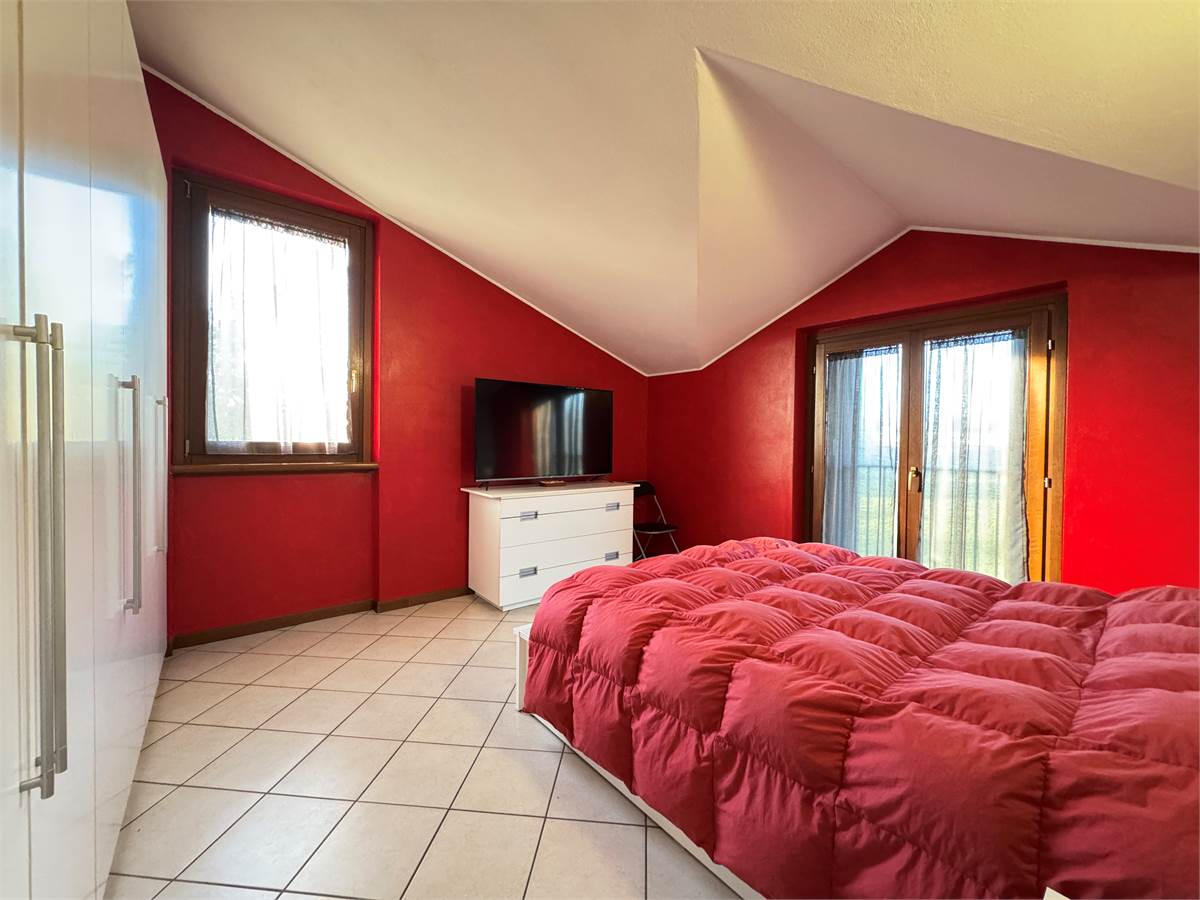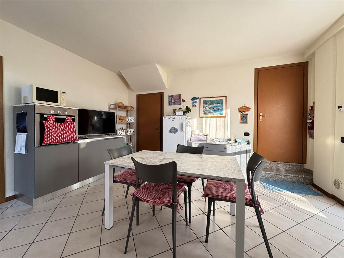 Al primo piano, mansardato, troviamo il secondo trilocale, con terrazzo e box di proprietà.