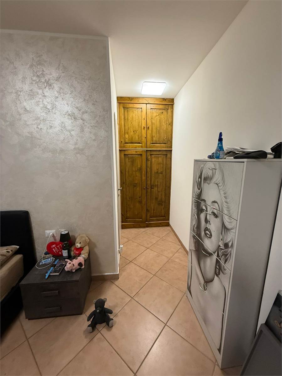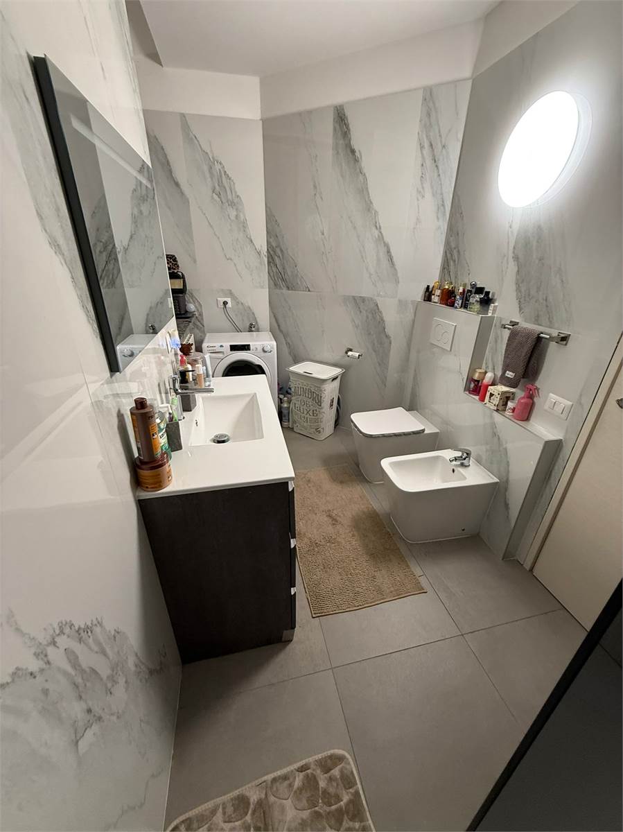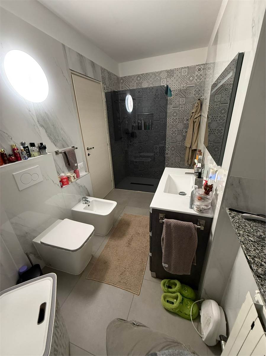 L'appartamento è al piano rialzato e si compone di ingresso su soggiorno con cucina a vista, ampio disimpegno, servizio finestrato con doccia walk in e sanitari sospesi, camera matrimoniale.