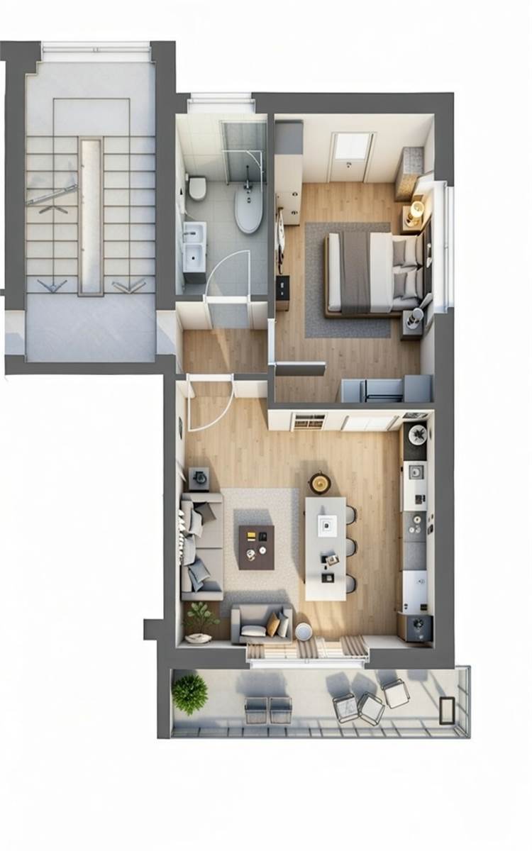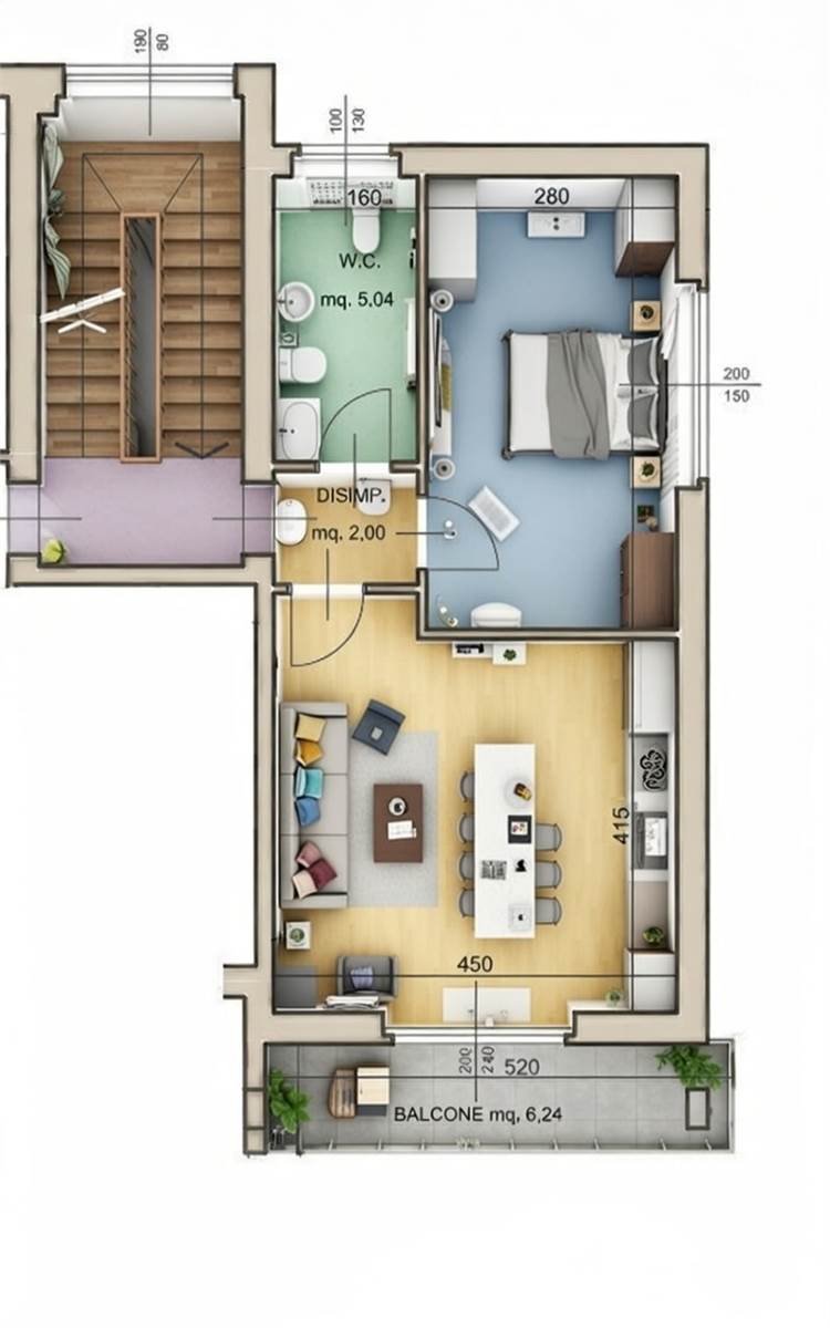 L'immobile dispone di un ampio soggiorno con cucina a vista, camera matrimoniale, servizio , balcone e ampio sottotetto uso ripostiglio. L'appartamento sarà ristrutturato con materiali di alta qualità e finiture di pregio, garantendo comfort e benessere agli abitanti.