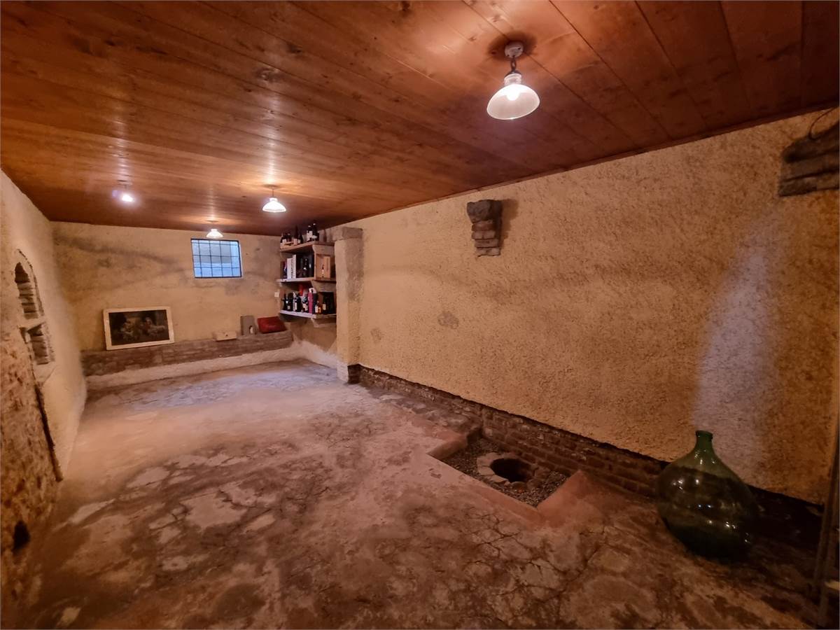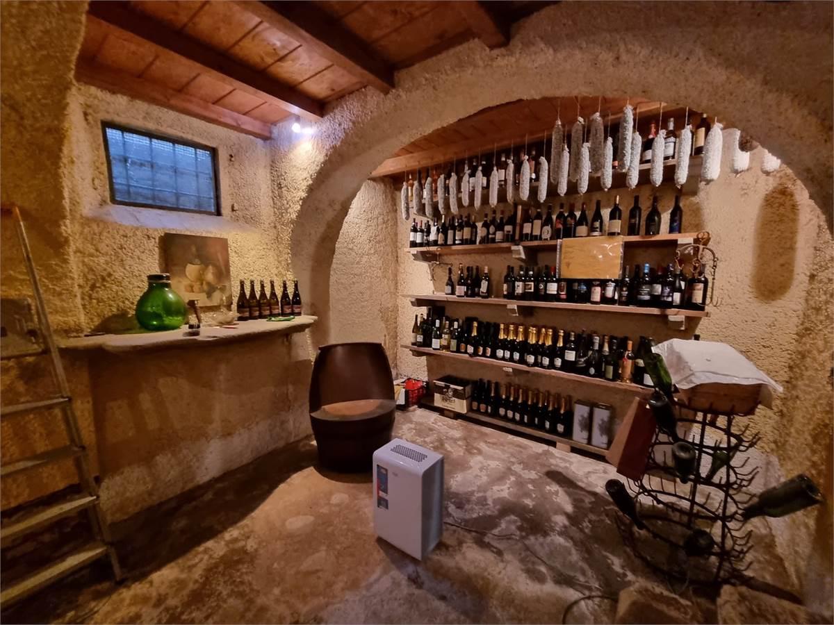 Piano interrato: Antica cantina con mattoni a vista e raccolta di vini