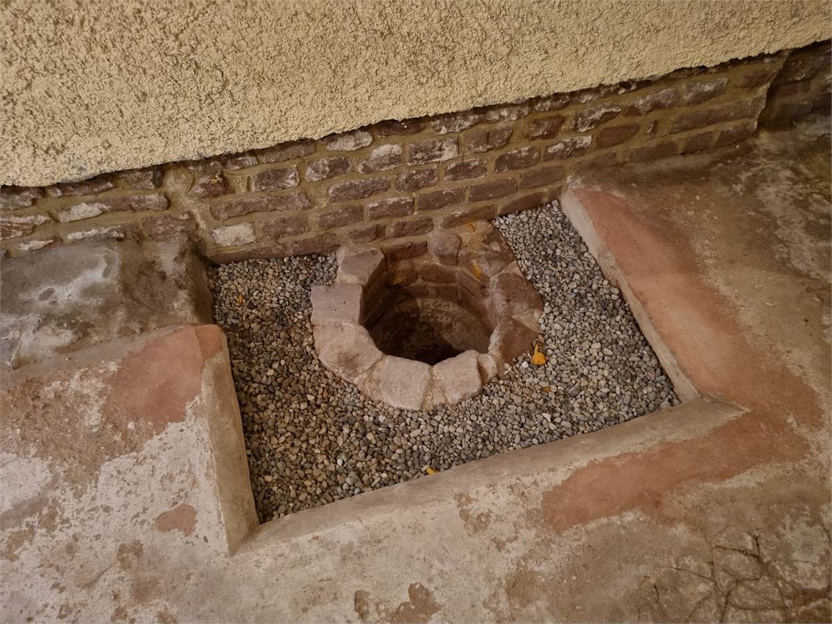 Cortile privato con aiuole fiorite e piante di medio taglio caratterizzato anche dalla presenza di un pozzo funzionante alto 4 metri in cemento forgiato bianco del 700 al centro del cortile ed un altro adeso alla finestra della cucina.