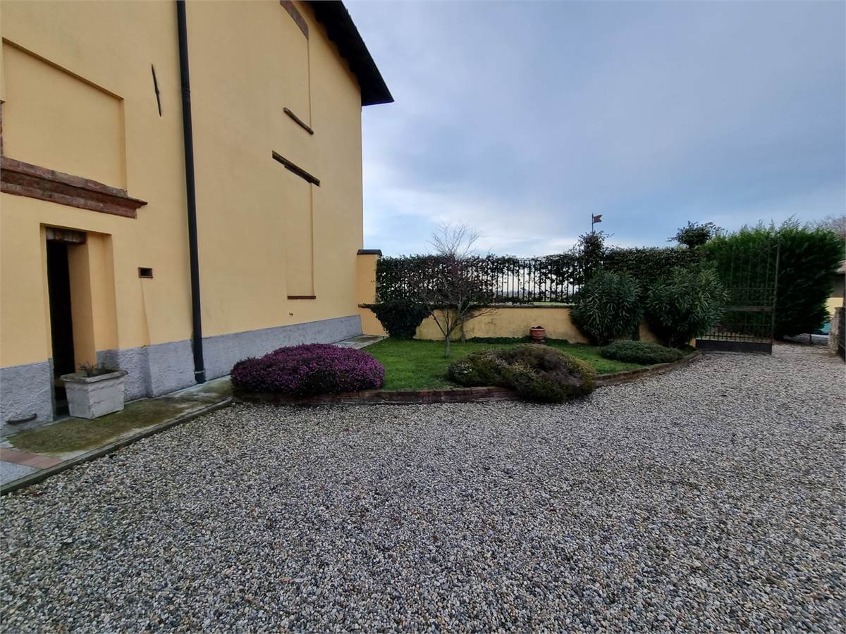 La pavimentazione è in curata porcellana degli anni 30 nel soggiorno, camera da letto e locale studio, mentre nella sala lettura e nel porticato è presente un cotto lombardo,