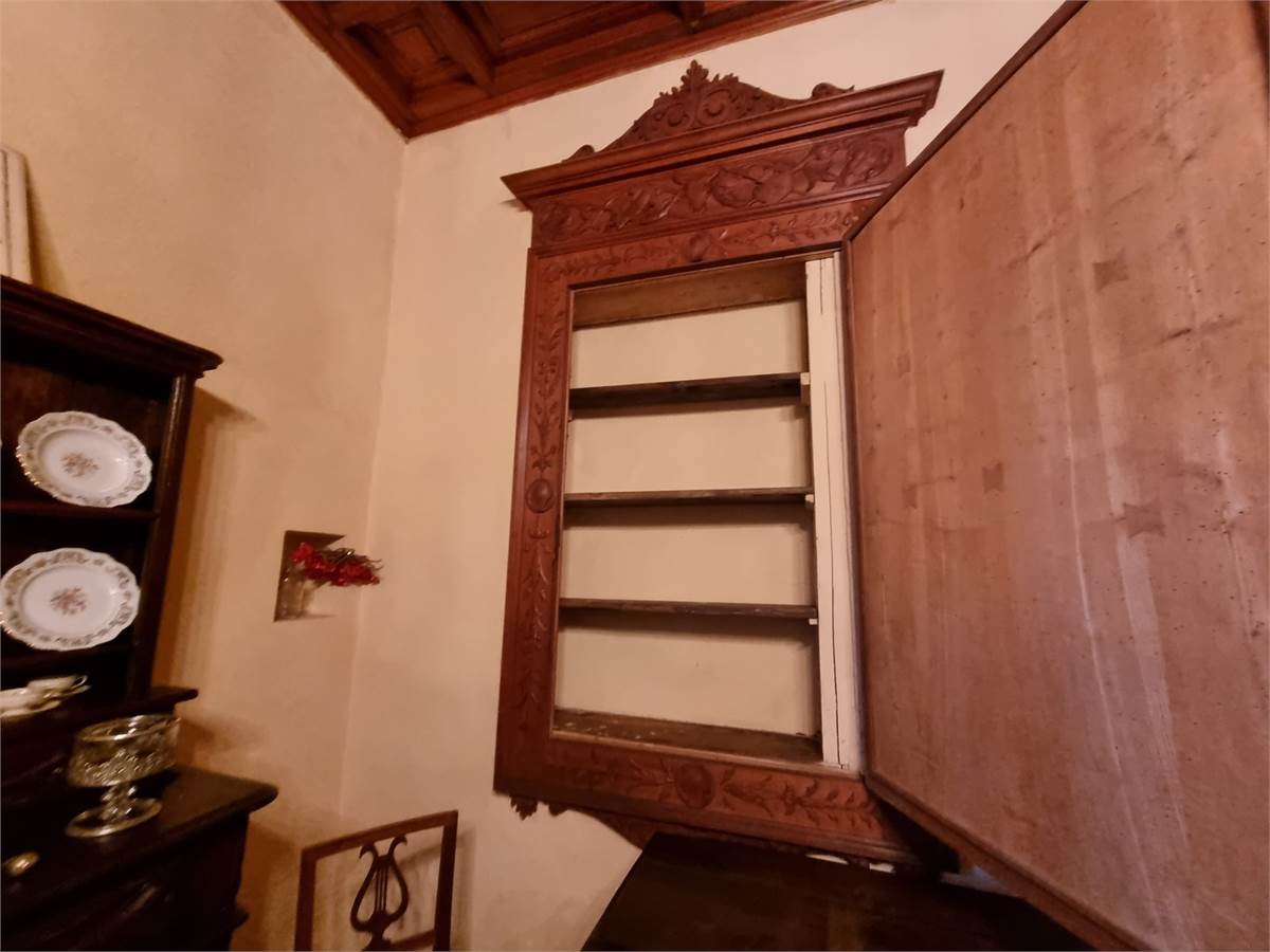 Piano terra: porticato di ingresso su ampio soggiorno corredato di tavolone fratino, locale studio che affaccia sul verde circostante, cucina abitabile comunicante tramite pertugio col piano primo, disimpegno, servizio igienico con ampie vasca e box doccia, camera da letto matrimoniale con bifore, sala lettura con soffitto a cupola affrescato ad “Angeli” e spaziosa lavanderia con annesso servizio.