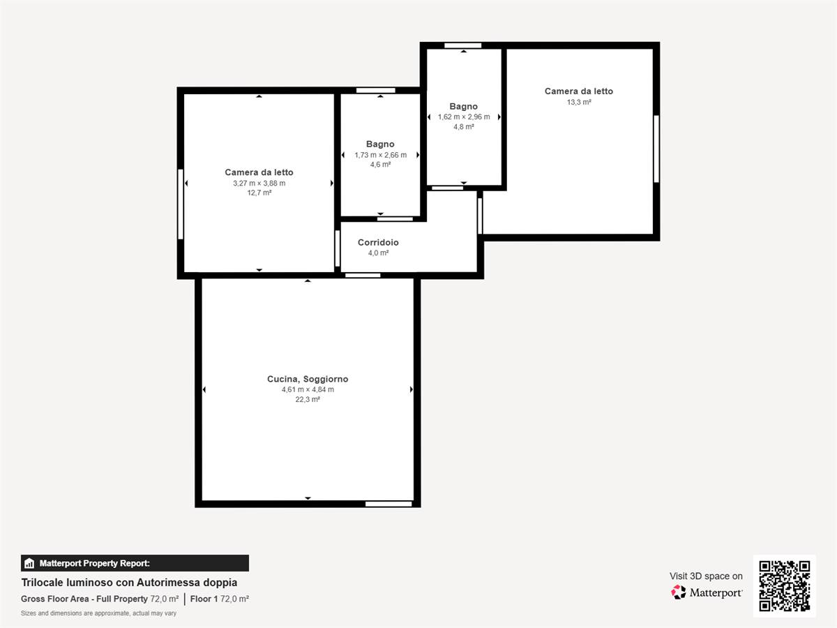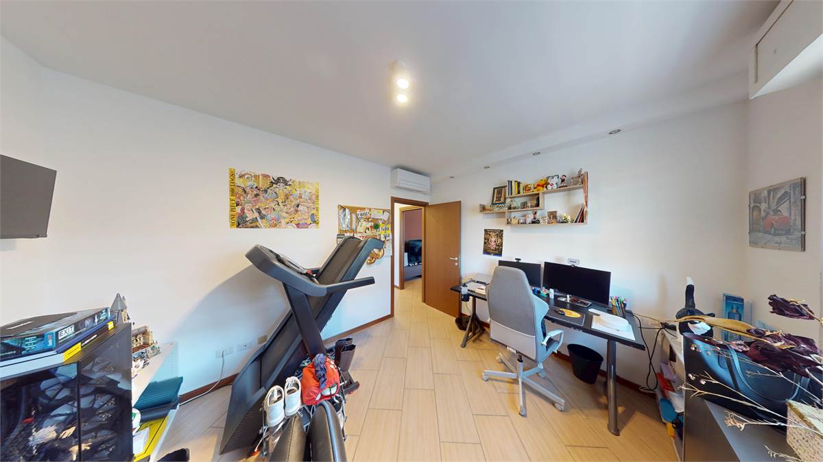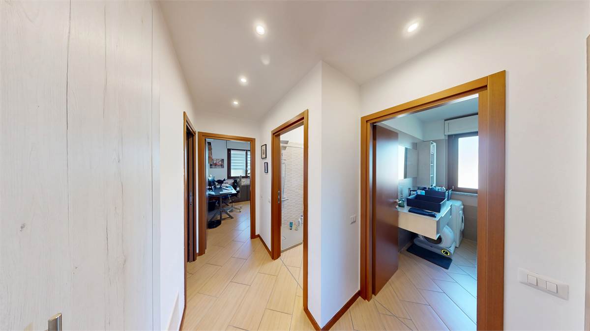L’appartamento, luminoso e ben distribuito, si apre su un accogliente ingresso che conduce alla zona giorno con soggiorno e cucina a vista, affacciati su un terrazzo vivibile ideale per momenti di relax all’aperto. La zona notte è composta da una camera matrimoniale, una cameretta e due bagni.