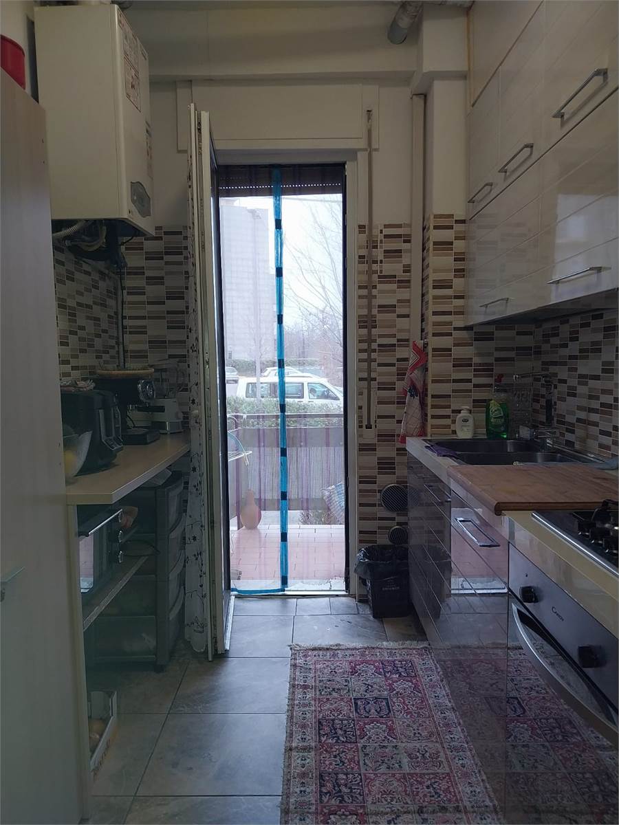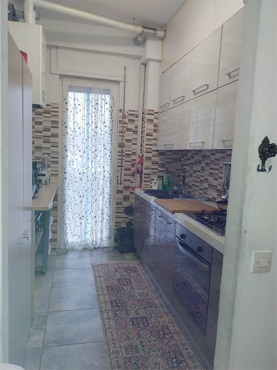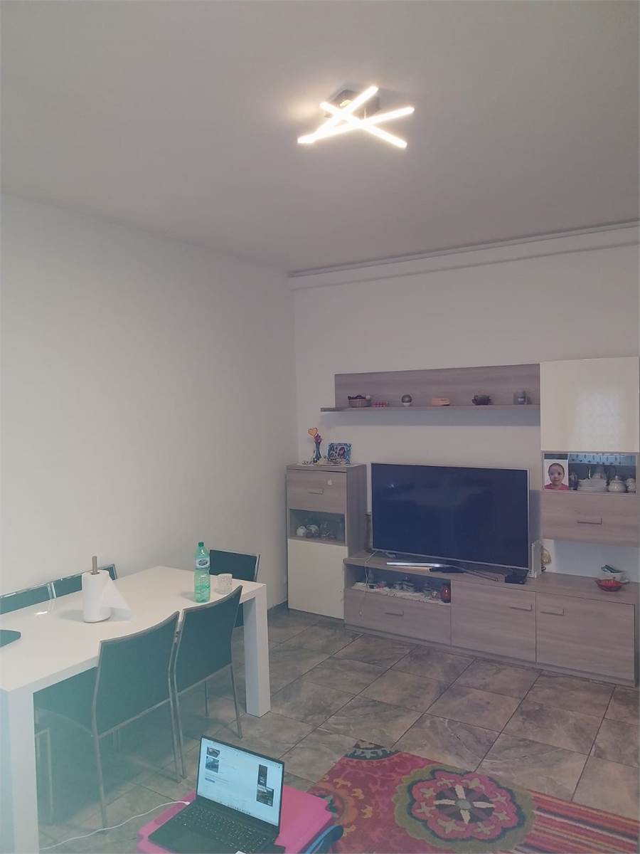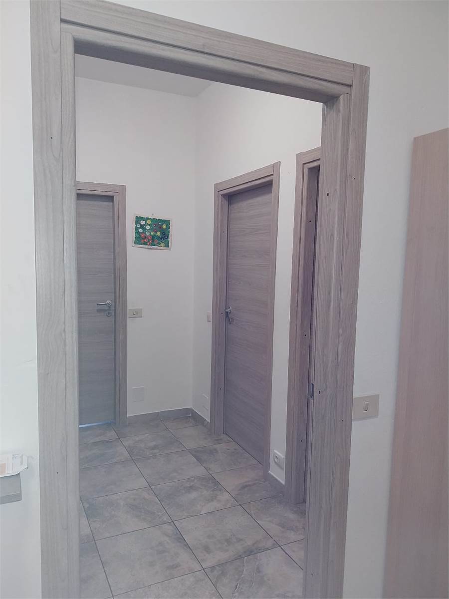 Ampio ingresso con porta blindata, cucina abitabile con balcone, soggiorno, disimpegno zona notte, due camere da letto matrimoniali e bagno con doccia.