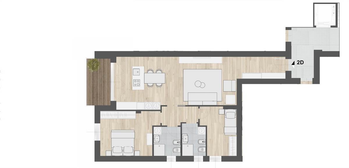 L'immobile posto al piano primo ed è composto da un' ampia zona giorno di 41 mq ,2 camere da letto e doppi servizi .