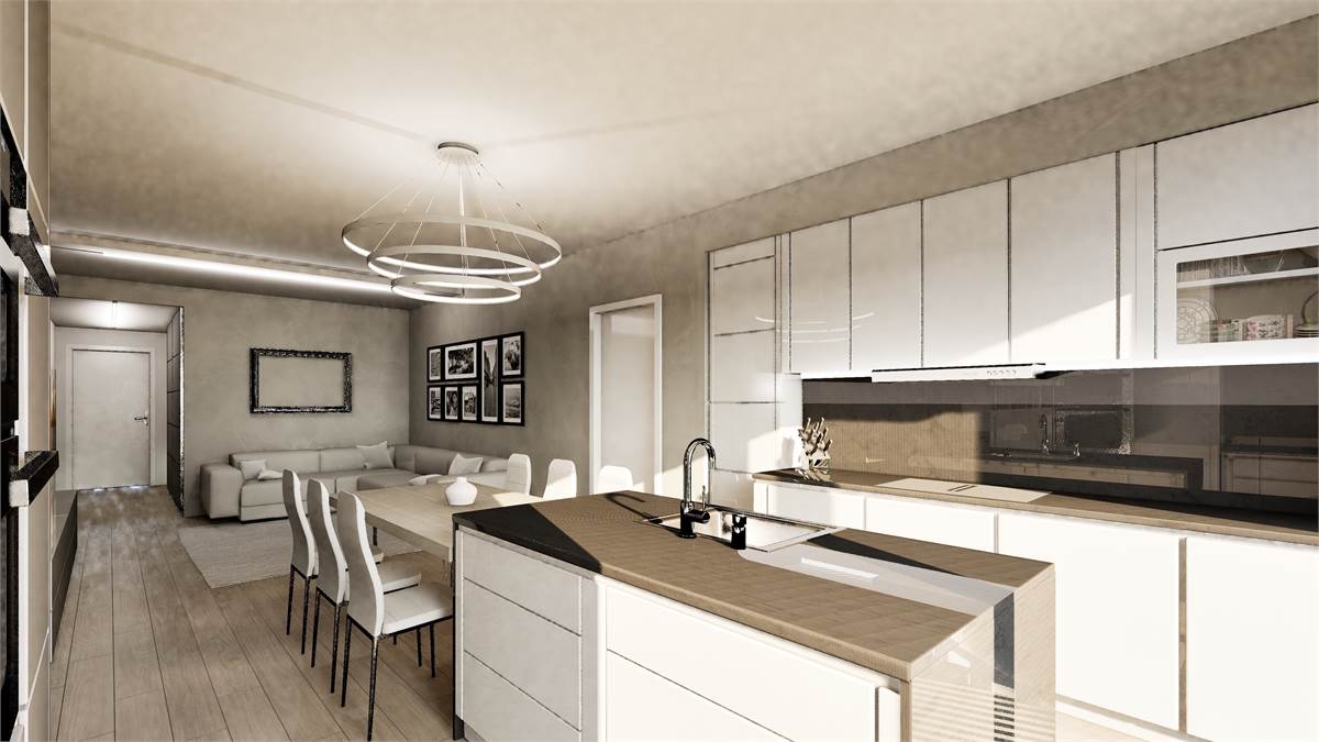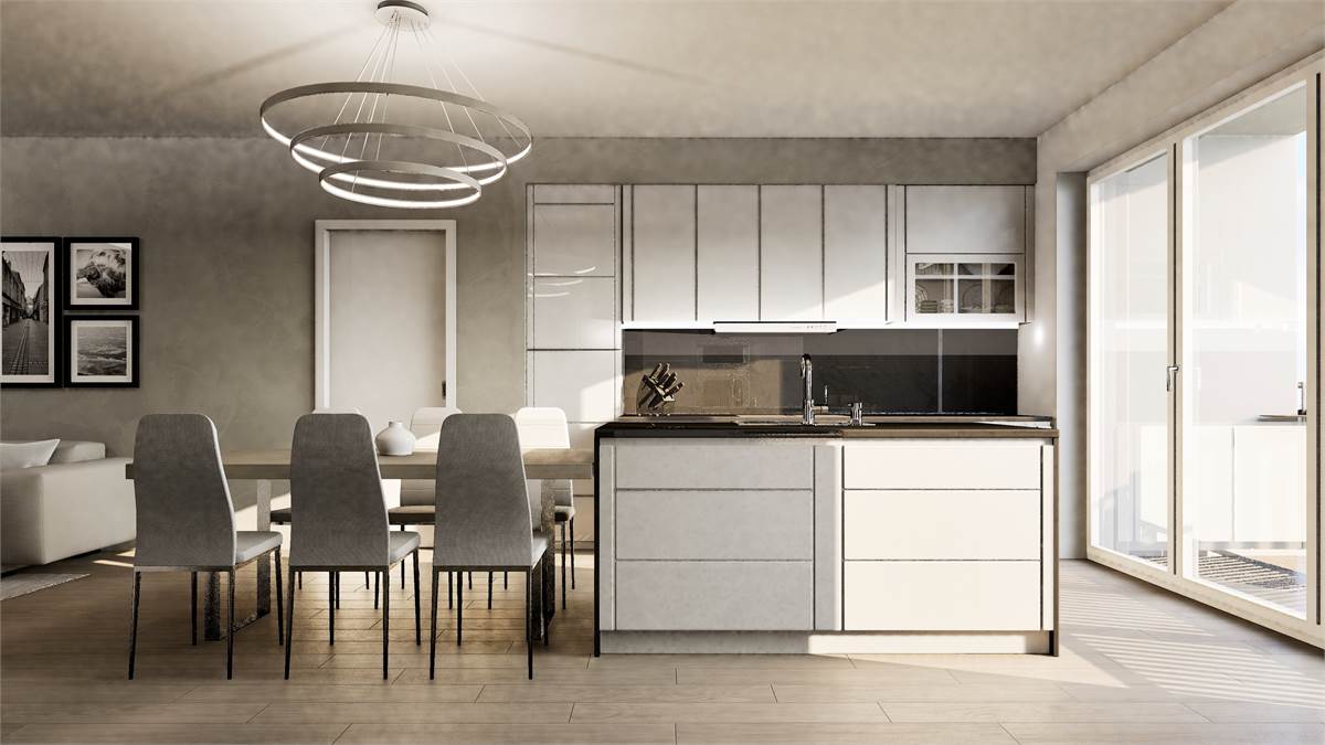 La zona giorno si completa di un balcone di 7 mq ideale per conversare con parenti e amici o in totale relax godendosi un ambiente verde poco distante.